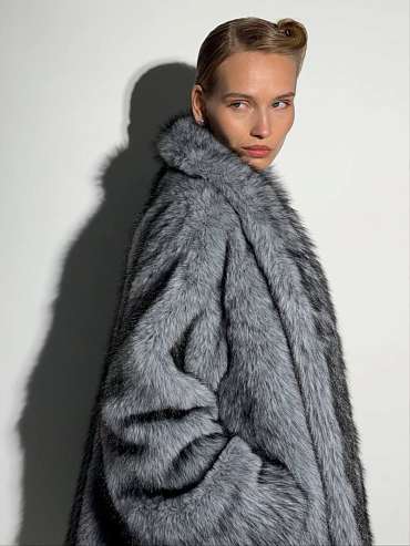 Шуба из экомеха волк